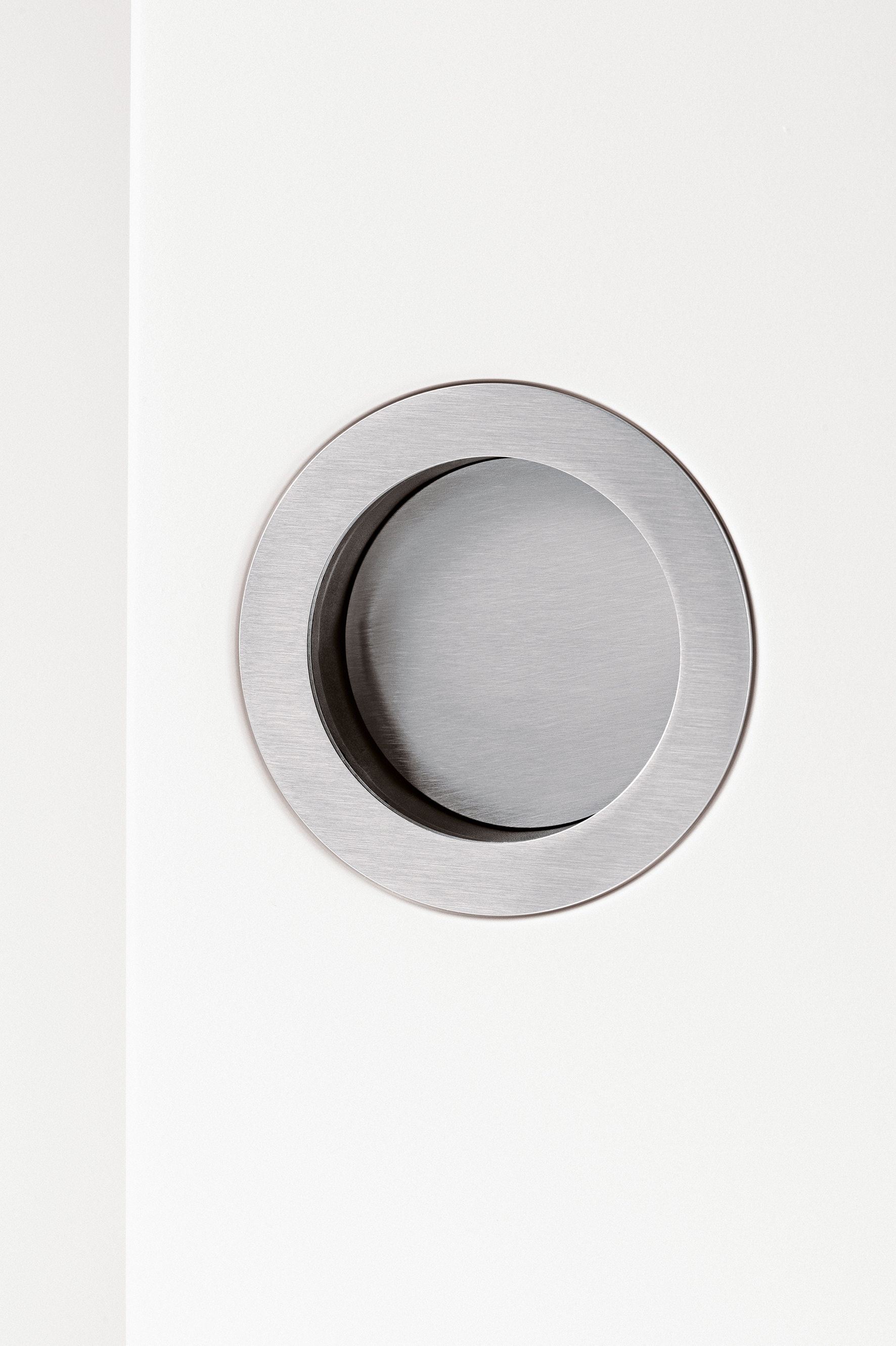 Inset handles with and oval or round shape, in stainless steel, brass, or with a flush look.